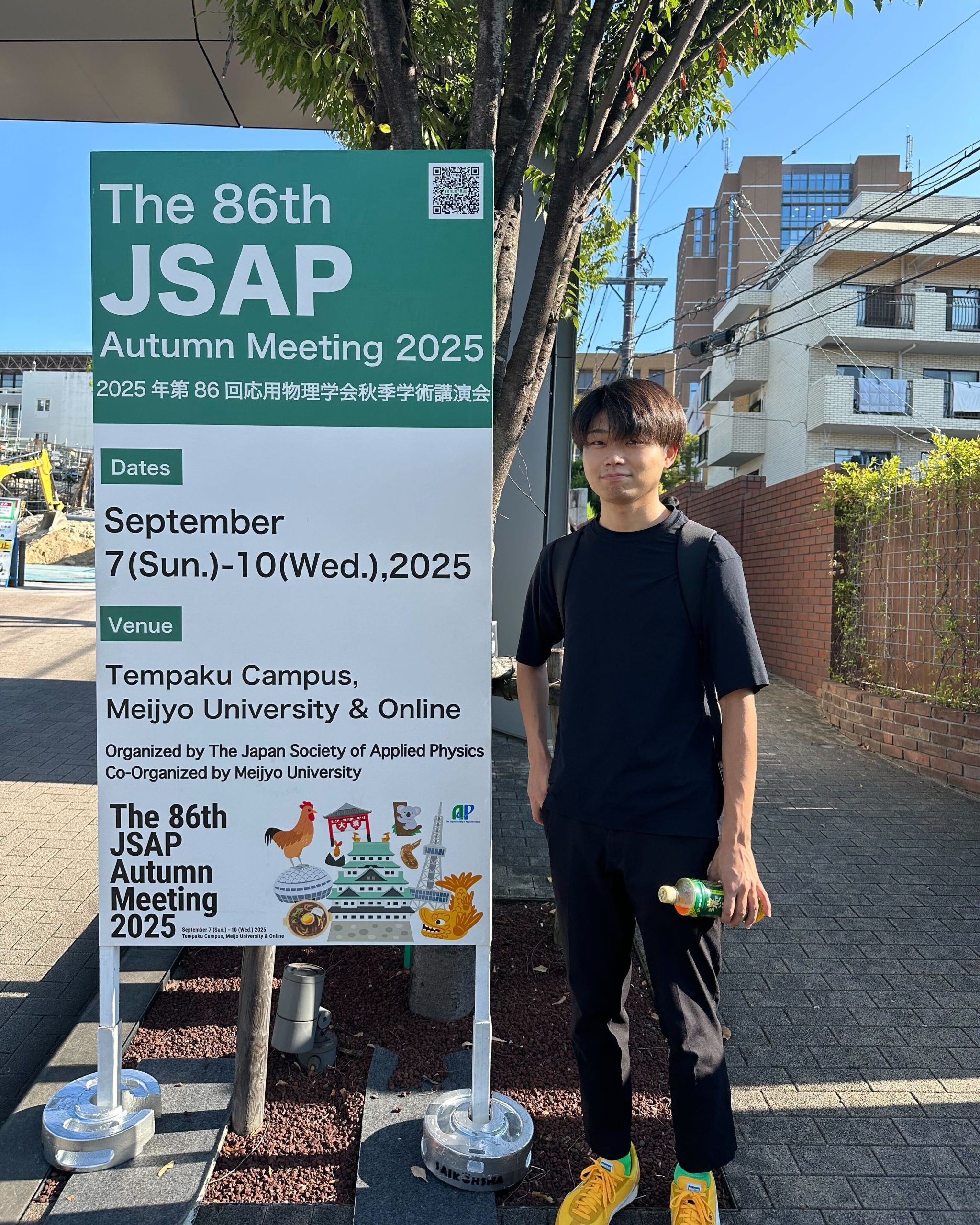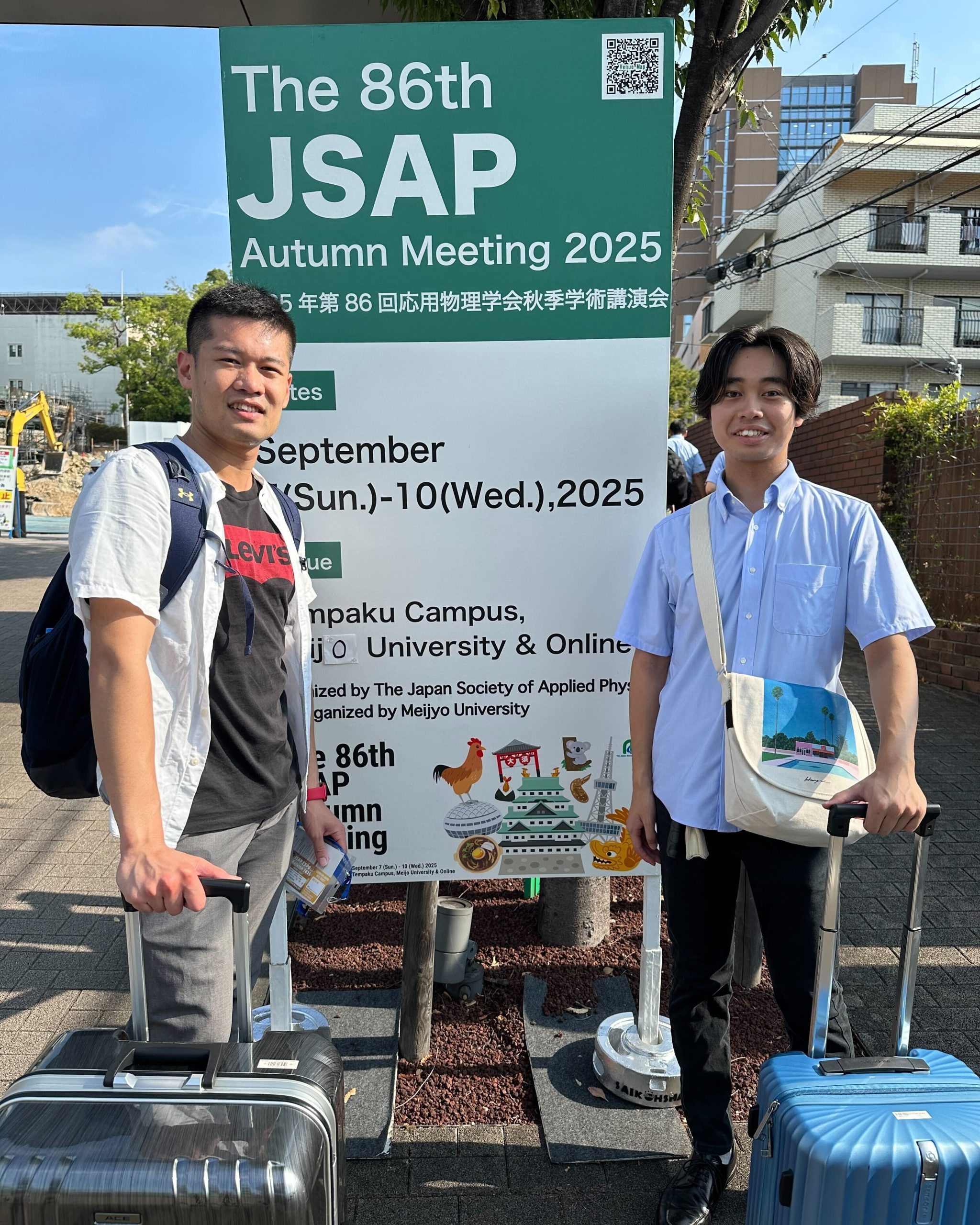 2025年9月7日から10日に名城大学天白キャンパスで開催された第86回応用物理学会秋季学術講演会で、小坂研究室から、関口雄平助教、黒川穂高助教、上牧瑛助教、M2の佐藤清隆さん、小林拓海さん、M1の後藤京介さんが口頭講演を行い、卒業生のレイエス・ラウスティンさん(現職NTT)が、第58回講演奨励賞受賞記念講演を行いました。