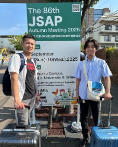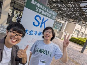 また、2025年9月16日から19日に広島大学 東広島キャンパスで開催された日本物理学会第80回年次大会小坂研究室からは、M2の伊藤大輔さん、M1の藤原太朔さんが参加し、口頭発表を行いました。