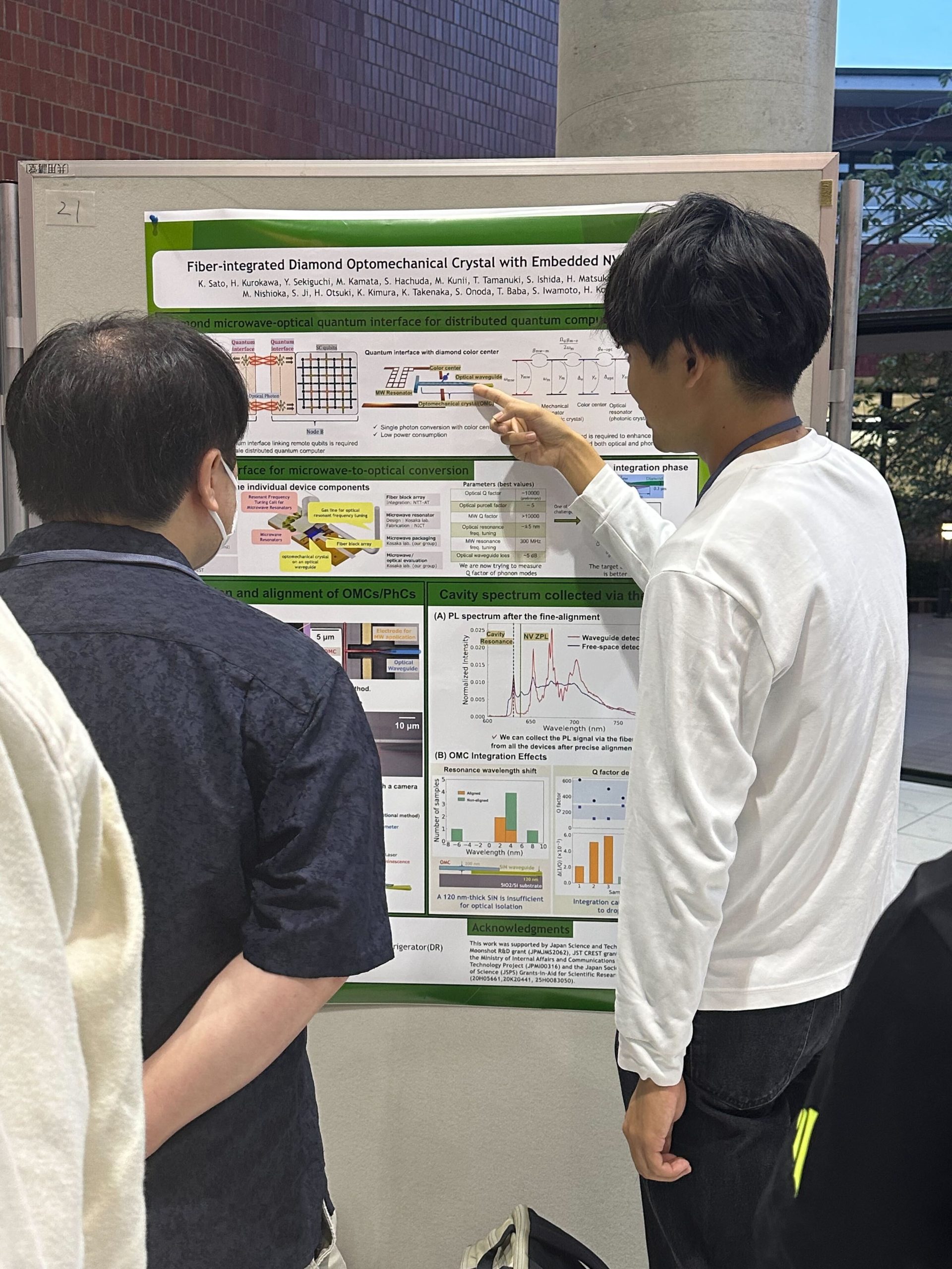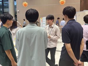 2025年9月25,26日に産総研(つくば)で量子Student Chapterが開催されました。今回のStudent Chapterは、4年ぶりの関東関西合同開催で、量子業界の学生、研究者が一堂に集まり、量子関連の研究者による講演会や学生のポスター発表が行われ、そのなかで活発な議論が交わされました。小坂研究室からは、D3山本萌生さん、M2伊藤大輔さん、佐藤清隆さん、小林拓海さん、M1藤原太朔さんがポスター発表を行い、そこでの議論を通じて新たな知見を得るとともに、他大学の学生と交友の輪を広げることが出来ました。 また、今回は産総研の研究室見学会が行われ、量子コンピュータのモック、富士通の量子コンピュータを見学し、非常に刺激を受け、研究へのモチベーションアップにつながる素晴らしい機会となりました。